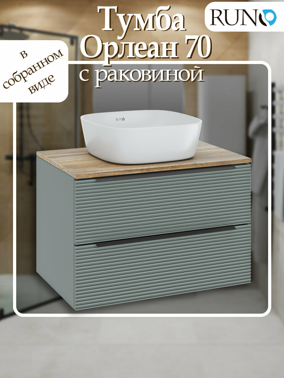 Купить Тумба с раковиной подвесная Орлеан 70, зелёная-дуб натуральный (раковина Bella) с доставкой по всей России.