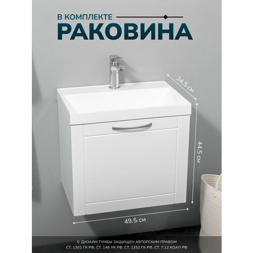 Конструкция тумбы под раковину обеспечивает надежность и прочность, что делает её идеальным решением для ежедневного использования. Подвесной дизайн позволит легко поддерживать чистоту в ванной комнате, а стильные дверцы добавят завершенность вашему интерьеру. Комплект тумба с раковиной отличается продуманным подходом к детальной отделке и качественным исполнением.