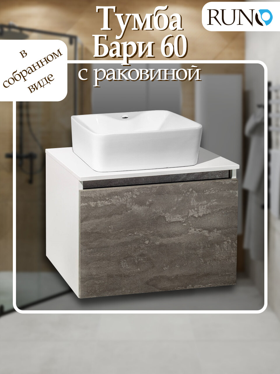Тумба с раковиной Runo Бари 60, железный камень (раковина Lavello, с отверстием под смеситель): сравнение цен, характеристики, фото, актуальное наличие и цены.