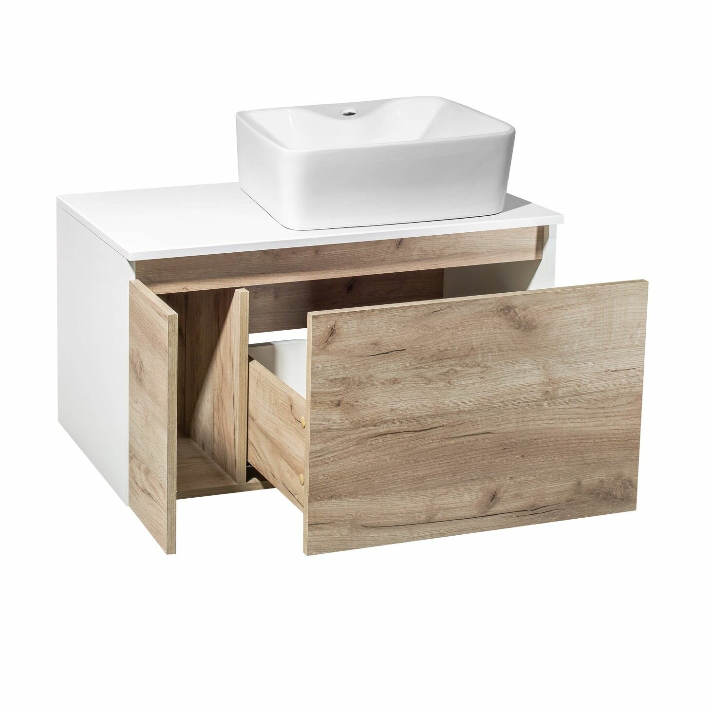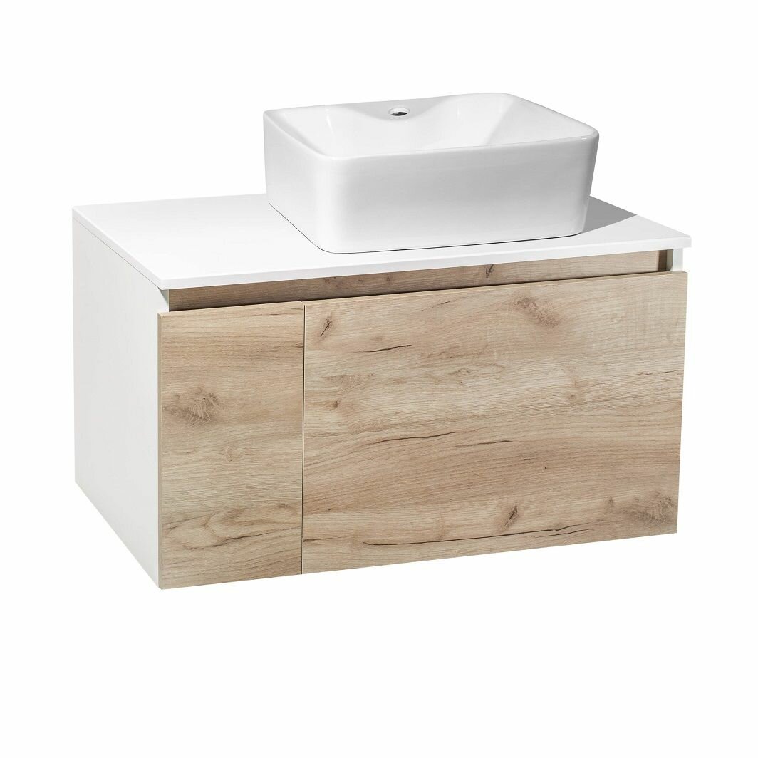 Купить Тумба с раковиной Runo Бари 80, крафтовый дуб (раковина Lavello, с отверстием под смеситель) с доставкой по всей России.