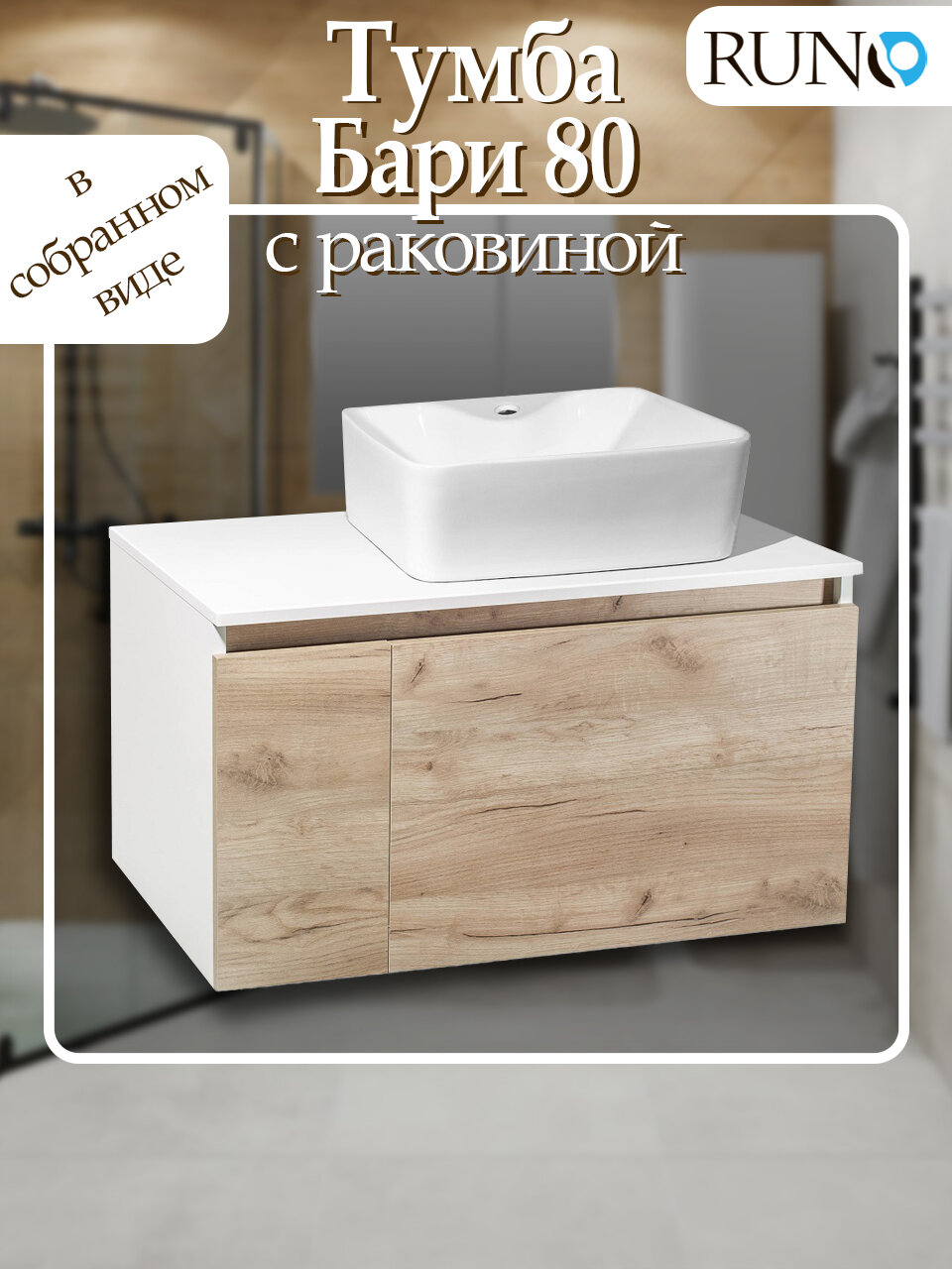 Тумба с раковиной Runo Бари 80, крафтовый дуб (раковина Lavello, с отверстием под смеситель): сравнение цен, характеристики, фото, актуальное наличие и цены.