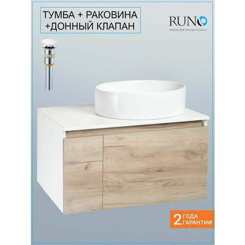 Тумба с раковиной подвесная Runo Бари 80, крафтовый дуб (раковина Ovale): сравнение цен, характеристики, фото, актуальное наличие и цены.