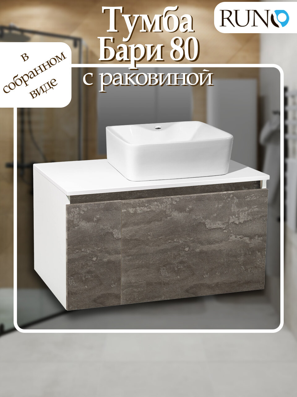 Тумба с раковиной Runo Бари 80, железный камень (раковина Lavello, с отверстием под смеситель): сравнение цен, характеристики, фото, актуальное наличие и цены.