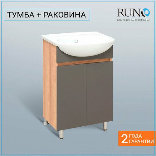 Тумба с раковиной Runo лада (подвесная) - модное и оригинальное решение для бюджетного оснащения ванной комнаты. Тумба для ванной лада выполнена в четырех цветах - классическом белом и в стильных цветах: - графит/лиственница, крафтовый дуб/белый и дуб блэквуд/белый. Тумба в ванную оснащена двумя распашными дверцами и одной внутренней встроенной (нерегулируемой) полкой. В комплект входят петли со встроенным доводчиком (верхняя петля с доводчиком, нижняя без доводчика), 2 хромированные и 2 пластиковые ножки. Тумба для ванной комплектуется керамической раковиной "Уют 60" (615*470 мм). Раковина глубиной 18 см. Мебель для ванной Runo - красота и практичность в мелочах! Продукция поставляется в прочной упаковке, для сохранности изделий в процессе доставки с нашего производства. Цвет товара на мониторе может отличаться от реальных цветов, это зависит от настроек цветового профиля и разрешения Вашего монитора или мобильного устройства.