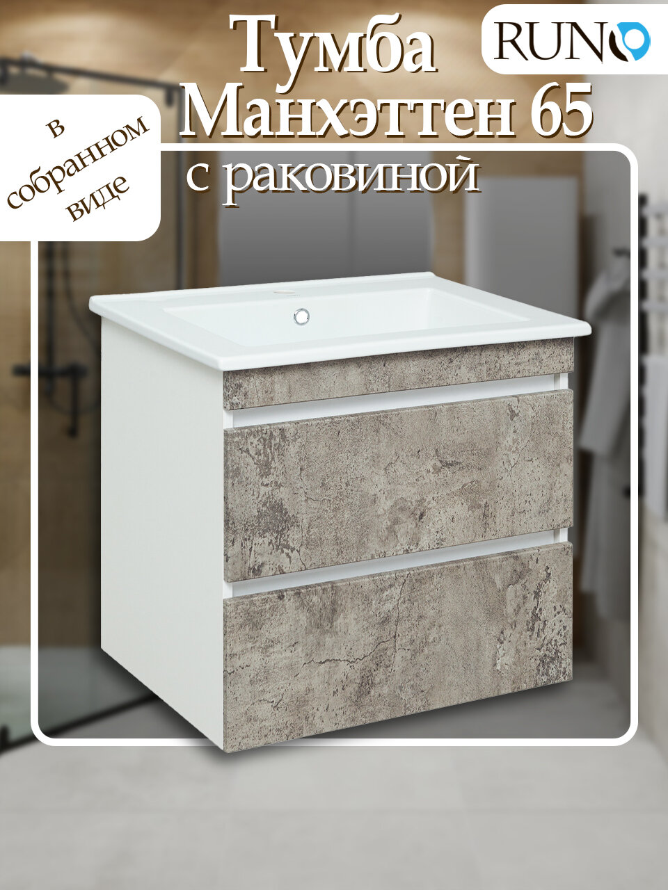 Купить Тумба с раковиной подвесная Runo манхэттен 65, серый бетон с доставкой по всей России. Тумба с раковиной подвесная Runo манхэттен 65, серый бетон: сравнение цен, характеристики, фото, актуальное наличие и цены.