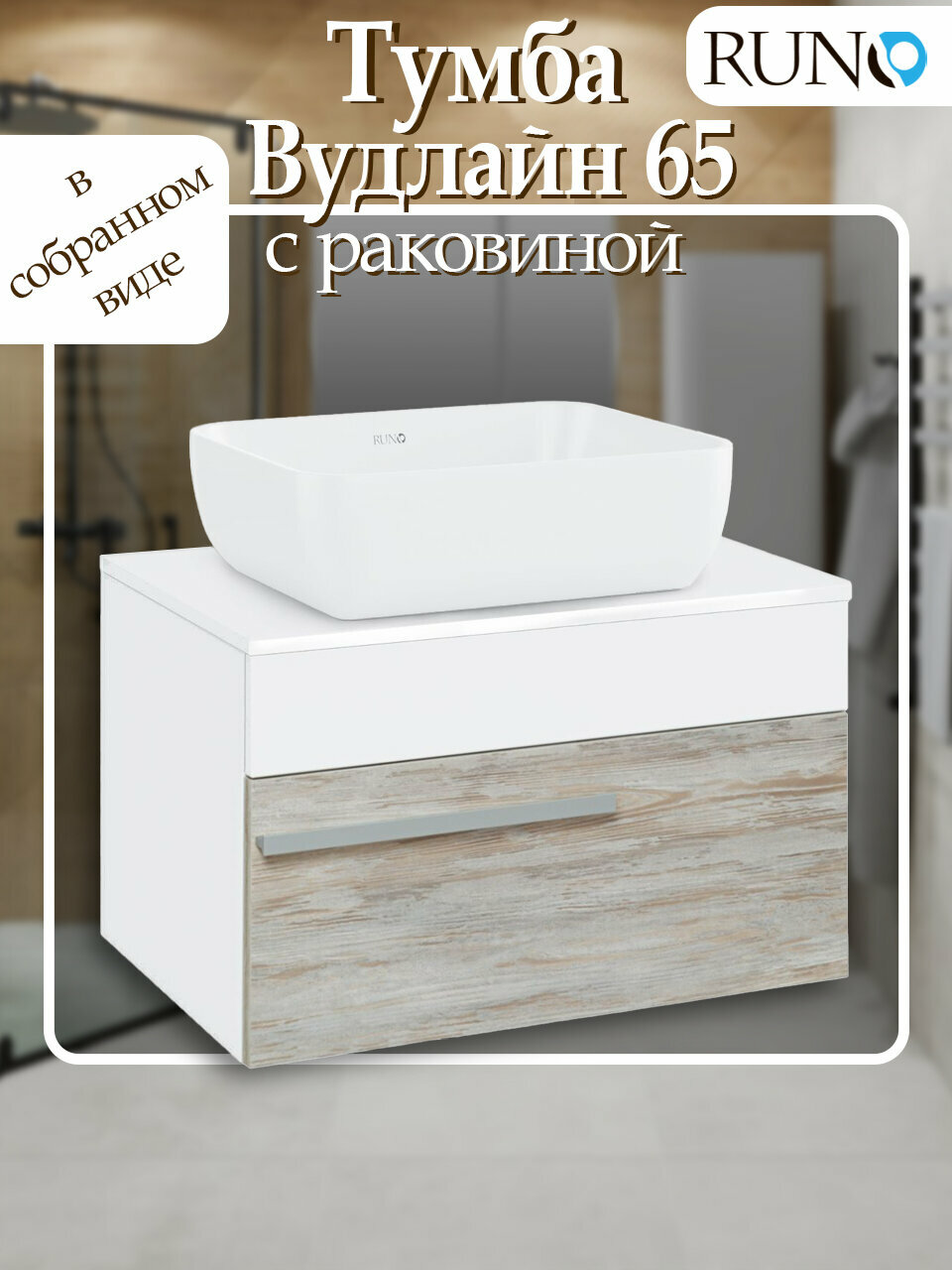 Тумба с раковиной подвесная Вудлайн 65, скандинавский дуб (раковина Cuatro): сравнение цен, характеристики, фото, актуальное наличие и цены.