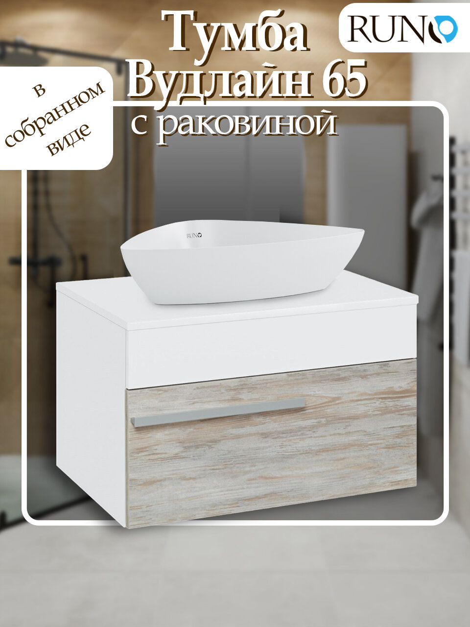 Тумба с раковиной подвесная Вудлайн 65, скандинавский дуб (раковина Terzo): сравнение цен, характеристики, фото, актуальное наличие и цены.