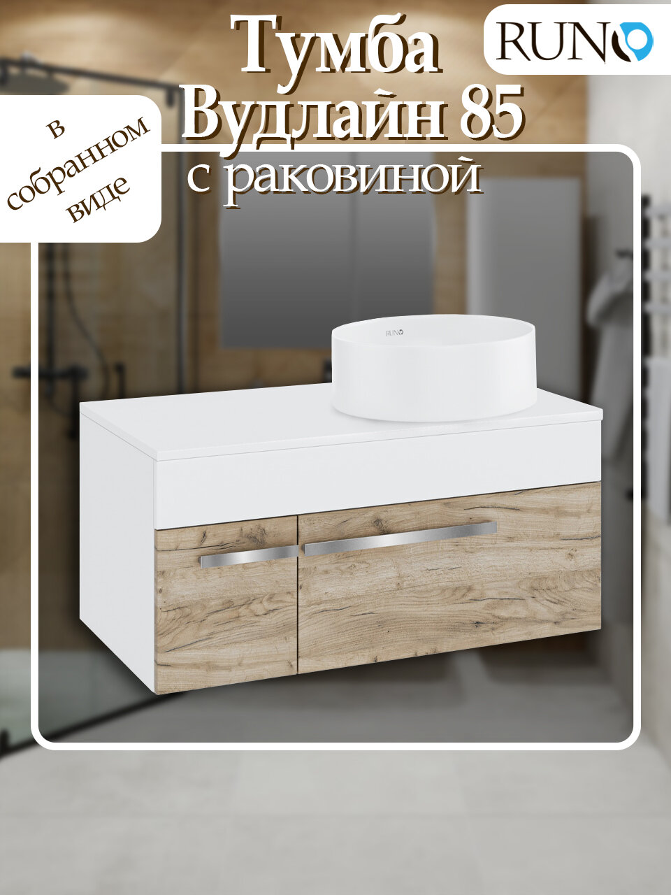 Купить Тумба с раковиной подвесная Вудлайн 85, крафтовый дуб (раковина Palla) с доставкой по всей России. Тумба с раковиной подвесная Вудлайн 85, крафтовый дуб (раковина Palla): сравнение цен, характеристики, фото, актуальное наличие и цены.