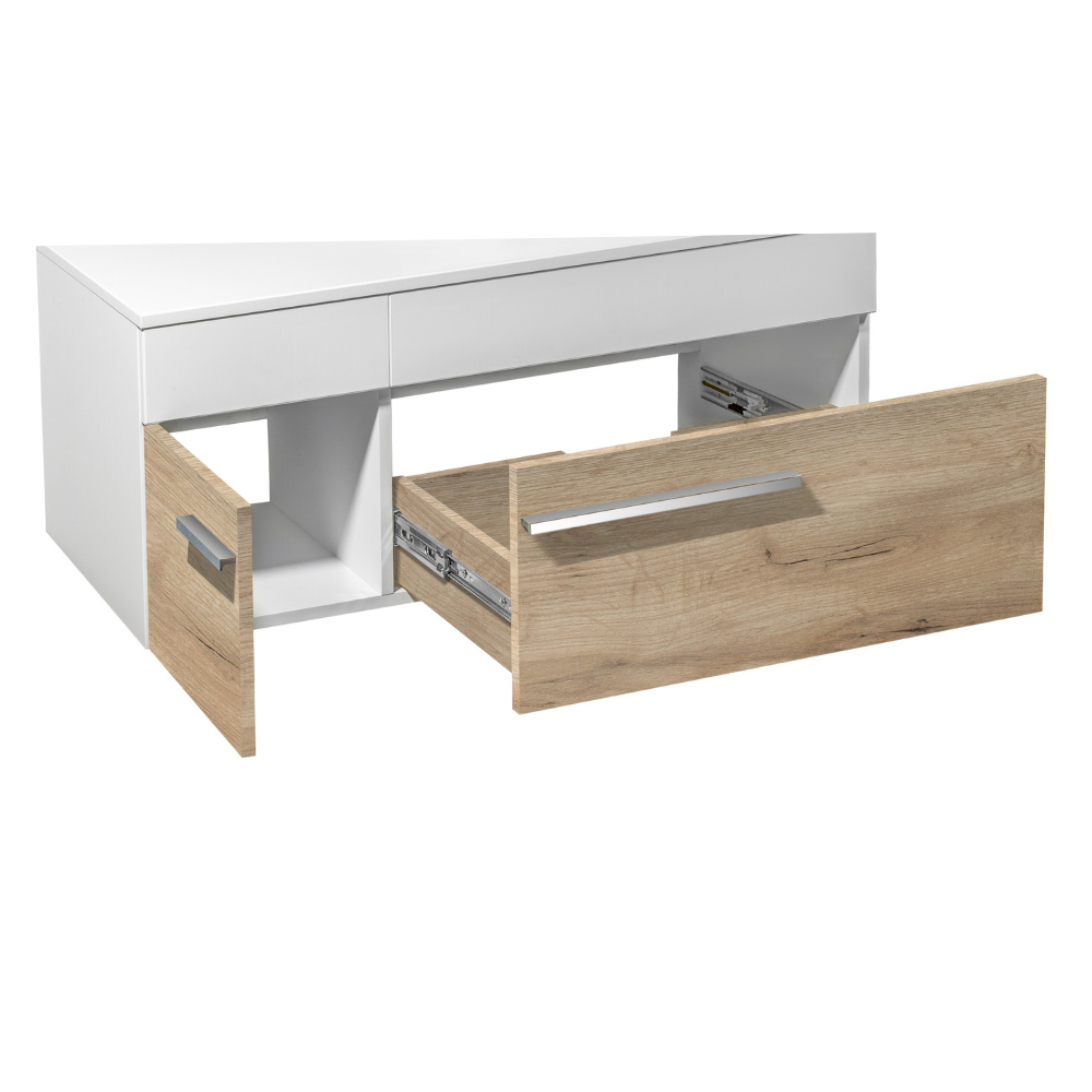 Тумба с раковиной вудлайн (подвесная) выполнена в ультрасовременном дизайне, в цвете крафтовый дуб. Тумба в ванную оснащена выдвижным ящиком на шариковых направляющих, с системой плавного закрывания и одной распашной дверцей, дверца укомплектована двумя петлями верхняя с доводчиком, нижняя без доводчика. Тумба под раковину вудлайн гармонично впишется в любой интерьер ванной комнаты. В комплект входят: 2 ручки, петли со встроенным доводчиком, навесы для крепления к стене. Тумба для ванной комплектуется умывальником на столешницу: «PALLA D41» (диаметр 41см) - идеальное решение для стильного интерьера ванной, создан для минималистичных интерьеров и подойдёт для санузлов в стиле лофт, минимализм и хай-тек. Строгая круглая геометрически правильная форма раковины, усиливает идею лаконичности в дизайне, устанавливается на столешницу, накладным методом. При установке которой, требуются минимальные усилия для монтажа. Раковина выполнена из белоснежного сантехнического фарфора. Модель компактная, обладает высокой прочностью и плотностью, гигиеничностью и долговечностью. Глянцевую поверхность умывальника легче мыть, на ней не задерживаются влага и загрязнения, материал не впитывает запахи. За долгие годы использования эта раковина не потеряет своего первоначального белоснежного цвета. Комплект подойдет для установки как в квартире, так и на даче. Мебель для ванной комнаты RUNO - красота и практичность в мелочах!