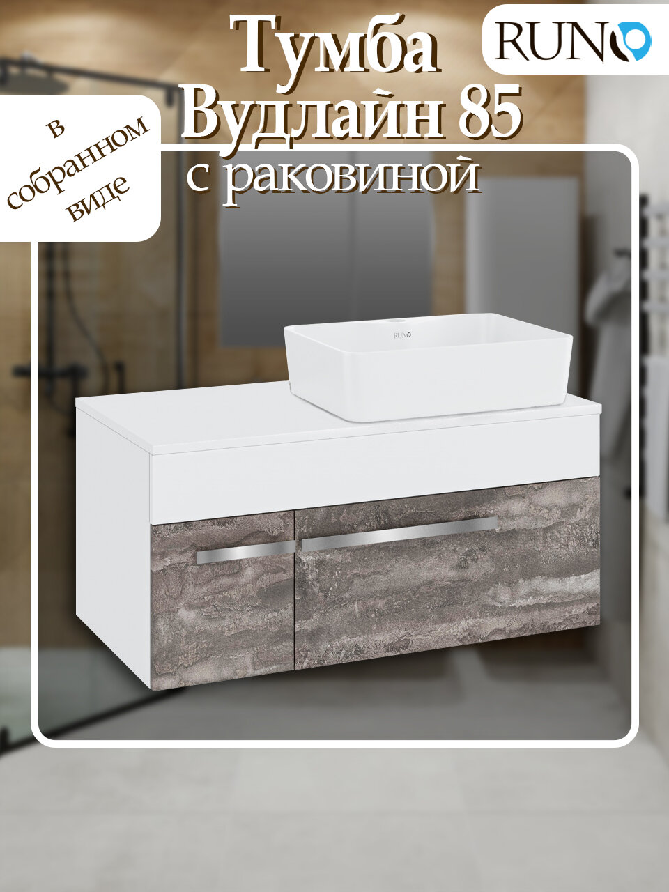 Тумба с раковиной подвесная Вудлайн 85, железный камень (раковина Lavello, с отверстием под смеситель): сравнение цен, характеристики, фото, актуальное наличие и цены.