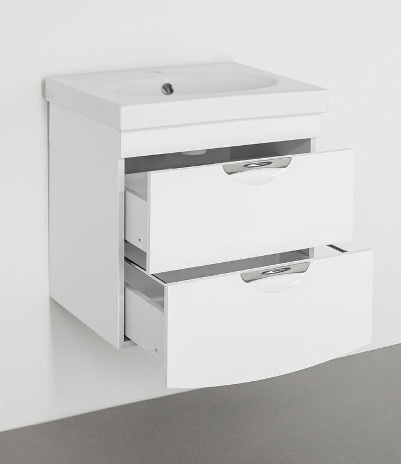 Купить Тумба с раковиной Style Line подвесная Жасмин 2 (2 ящ.), Комо 60, Люкс белая, PLUS с доставкой по всей России.