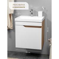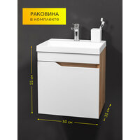 Купить Тумба с раковиной в ванную Fortuna 50, умывальник в комплекте, белый крафт с дверцей с доставкой по всей России.