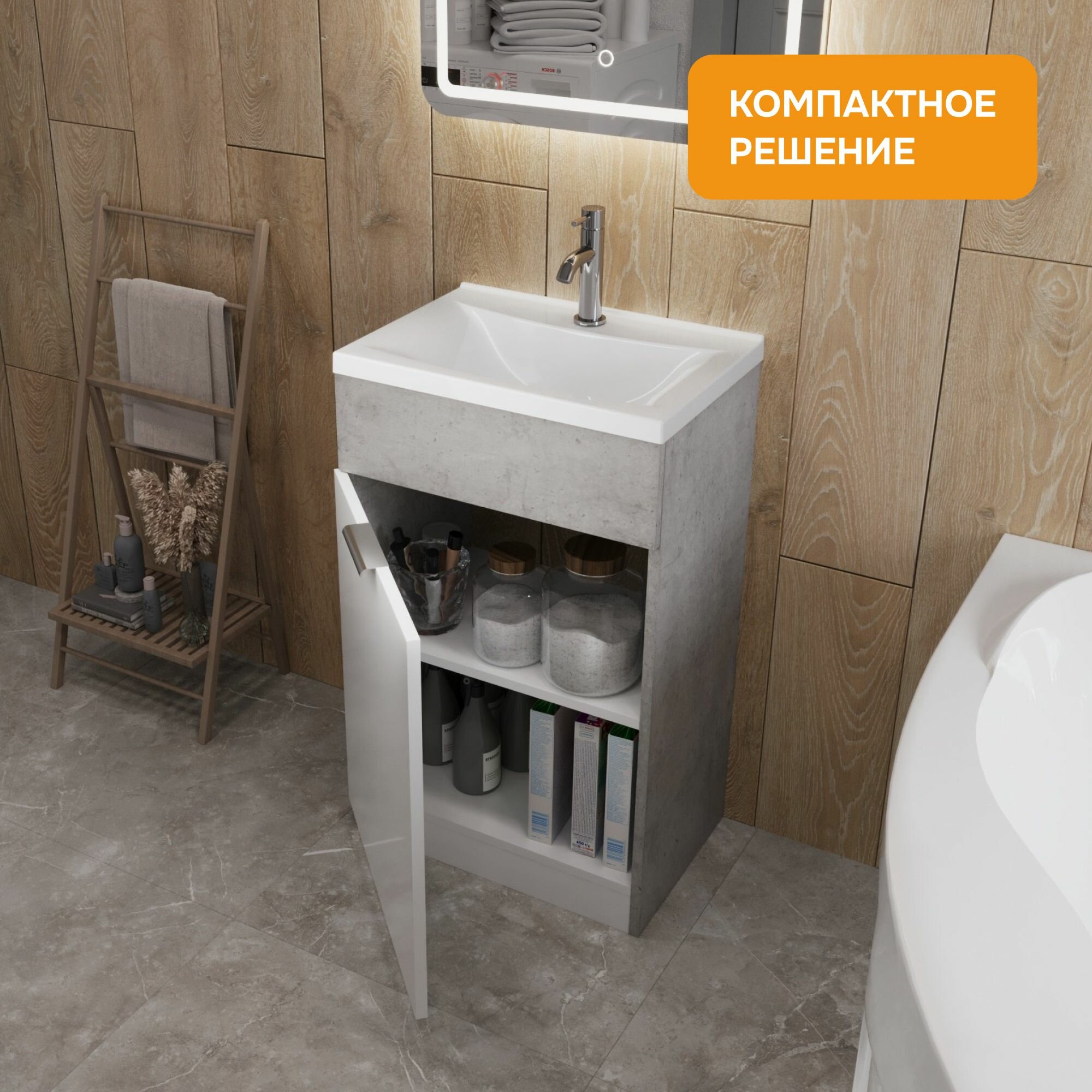 Купить Тумба с раковиной в ванную 50х35 см VEVA напольная, цвет Бетон светло-серый, MODULEASY Ц0000039171 с доставкой по всей России. Тумба с раковиной в ванную 50х35 см VEVA напольная, цвет Бетон светло-серый, MODULEASY Ц0000039171: сравнение цен, характеристики, фото, актуальное наличие и цены.