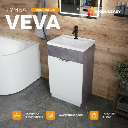 Купить Тумба с раковиной в ванную 50х35 см VEVA напольная, цвет Бетон темно-серый, MODULEASY Ц0000039172 с доставкой по всей России.