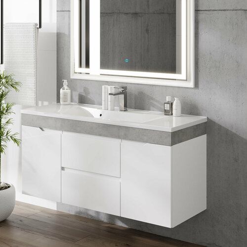 Купить Тумба с раковиной в ванную FAURAplus, Элен 120, подвесная, белая, глянцевая, раковина Elen. с доставкой по всей России.