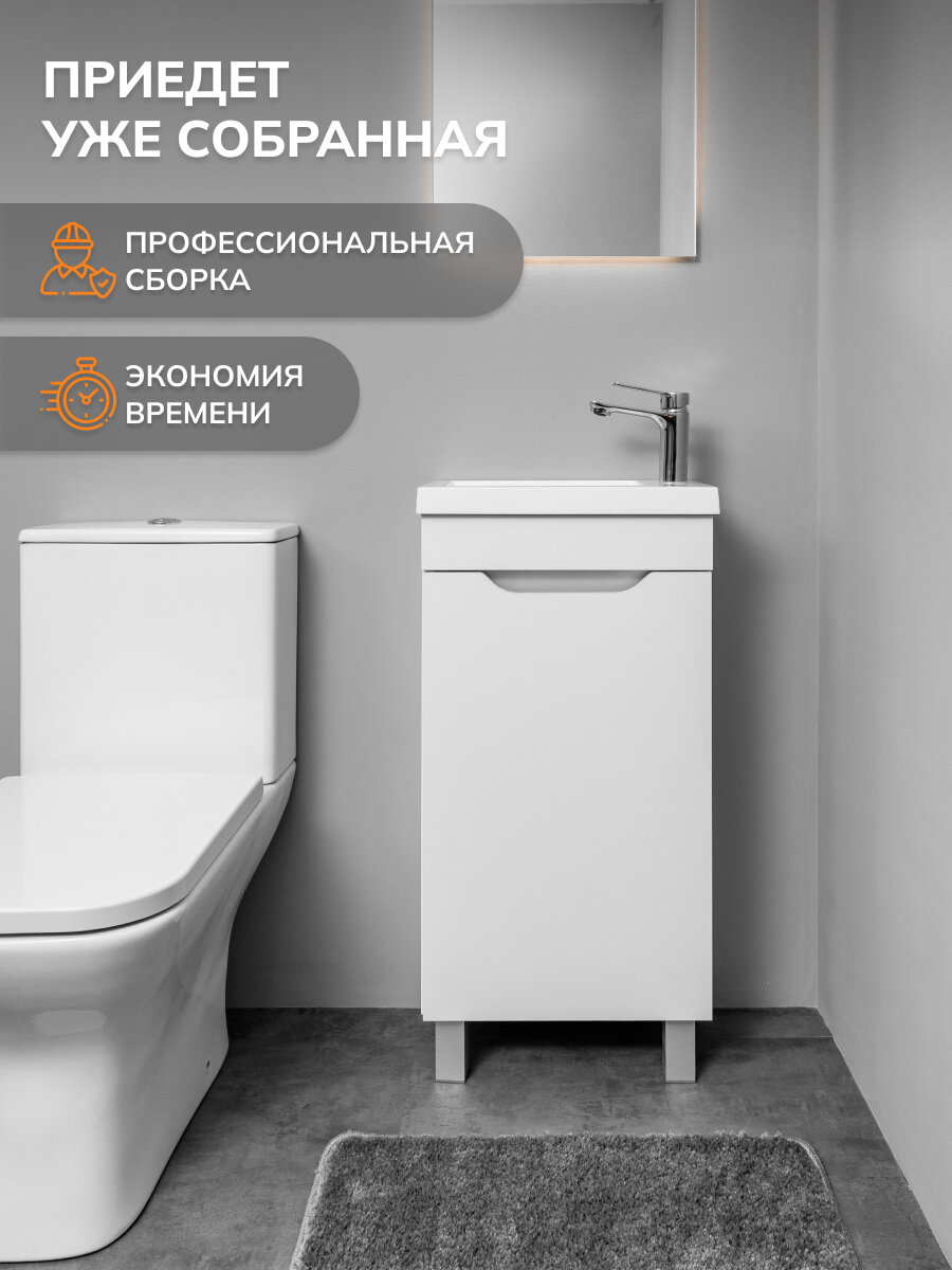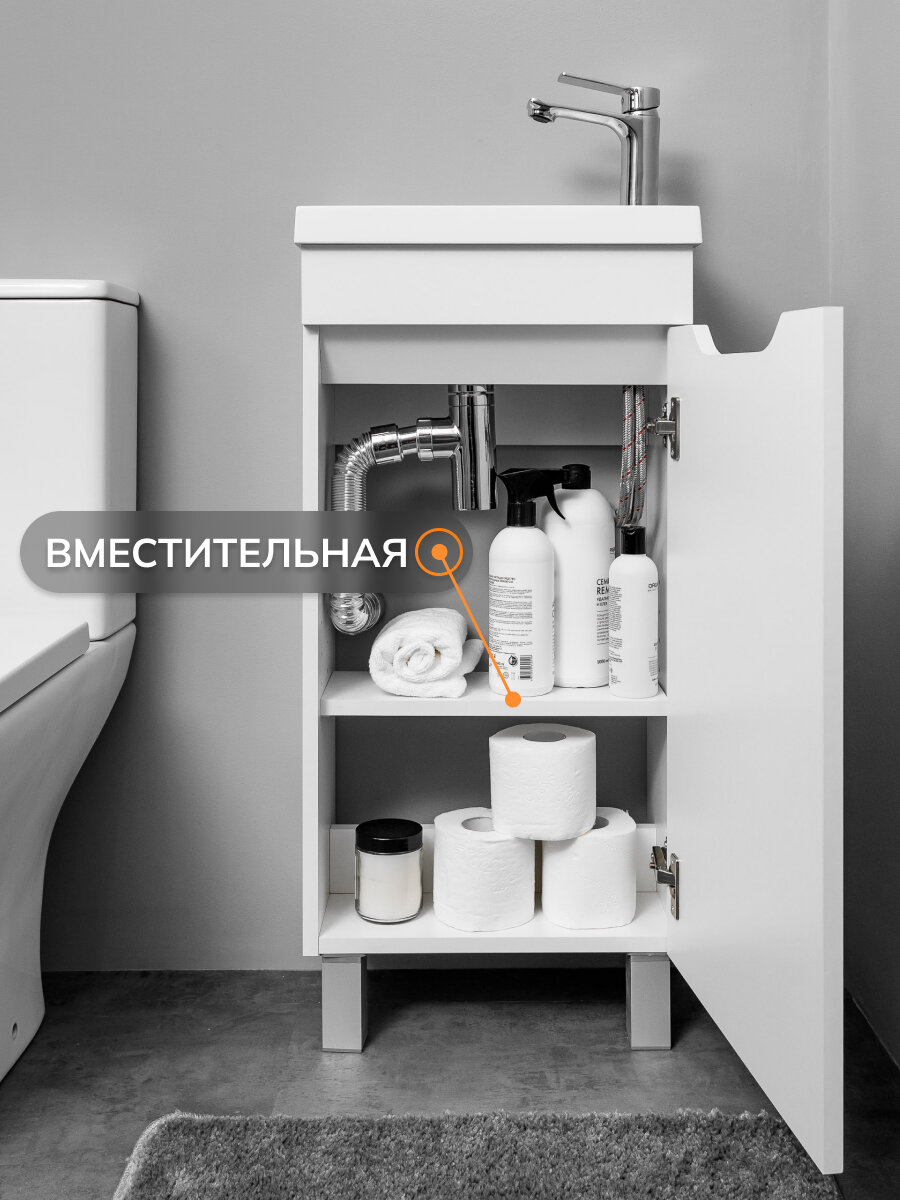 Купить Тумба с раковиной в ванную Bravo 40, умывальник в комплекте, белая с дверцей напольная с доставкой по всей России.