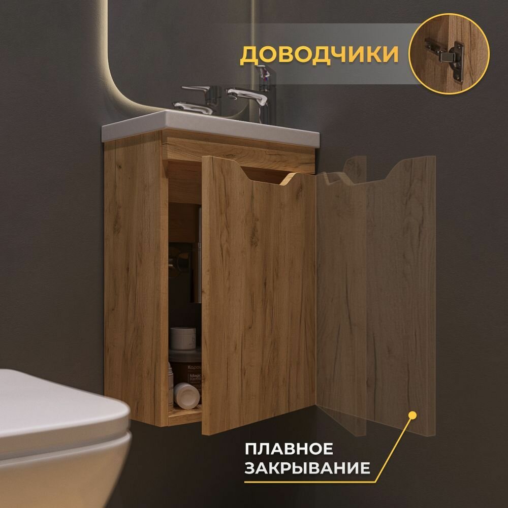 Тумба с раковиной в ванную IZEO 40, умывальник в комплекте, дуб крафт золотой с дверцей: сравнение цен, характеристики, фото, актуальное наличие и цены.