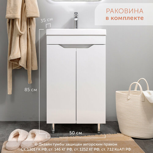 Тумба с раковиной Arona 50 - стильное и функциональное решение для вашей ванной комнаты.