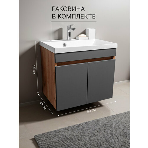 Тумба с раковиной в ванную Nemi 60, умывальник в комплекте, графит дуб крафт золотой с дверцами: сравнение цен, характеристики, фото, актуальное наличие и цены.