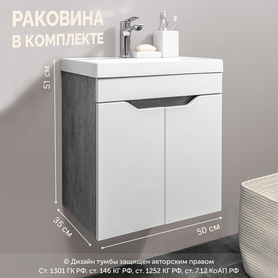 Купить Тумба с раковиной GARDAhome Arona 50 см, подвесная, дверцы с доводчиком, белый/бетон с доставкой по всей России. Тумба с раковиной GARDAhome Arona 50 см, подвесная, дверцы с доводчиком, белый/бетон: сравнение цен, характеристики, фото, актуальное наличие и цены.