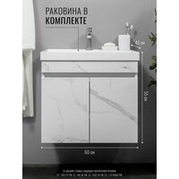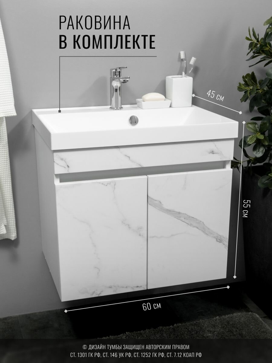 Тумба с раковиной в ванную подвесная Nemi 60 цвет белый мрамор: сравнение цен, характеристики, фото, актуальное наличие и цены.