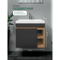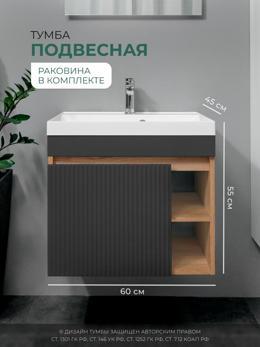 Тумба с раковиной в ванную подвесная с дверцей и нишами Графит/Дуб крафт золотой: сравнение цен, характеристики, фото, актуальное наличие и цены.