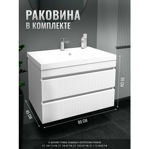 Купить Тумба с раковиной в ванную подвесная с ящиками 80 см фрезерованный фасад с доставкой по всей России.
