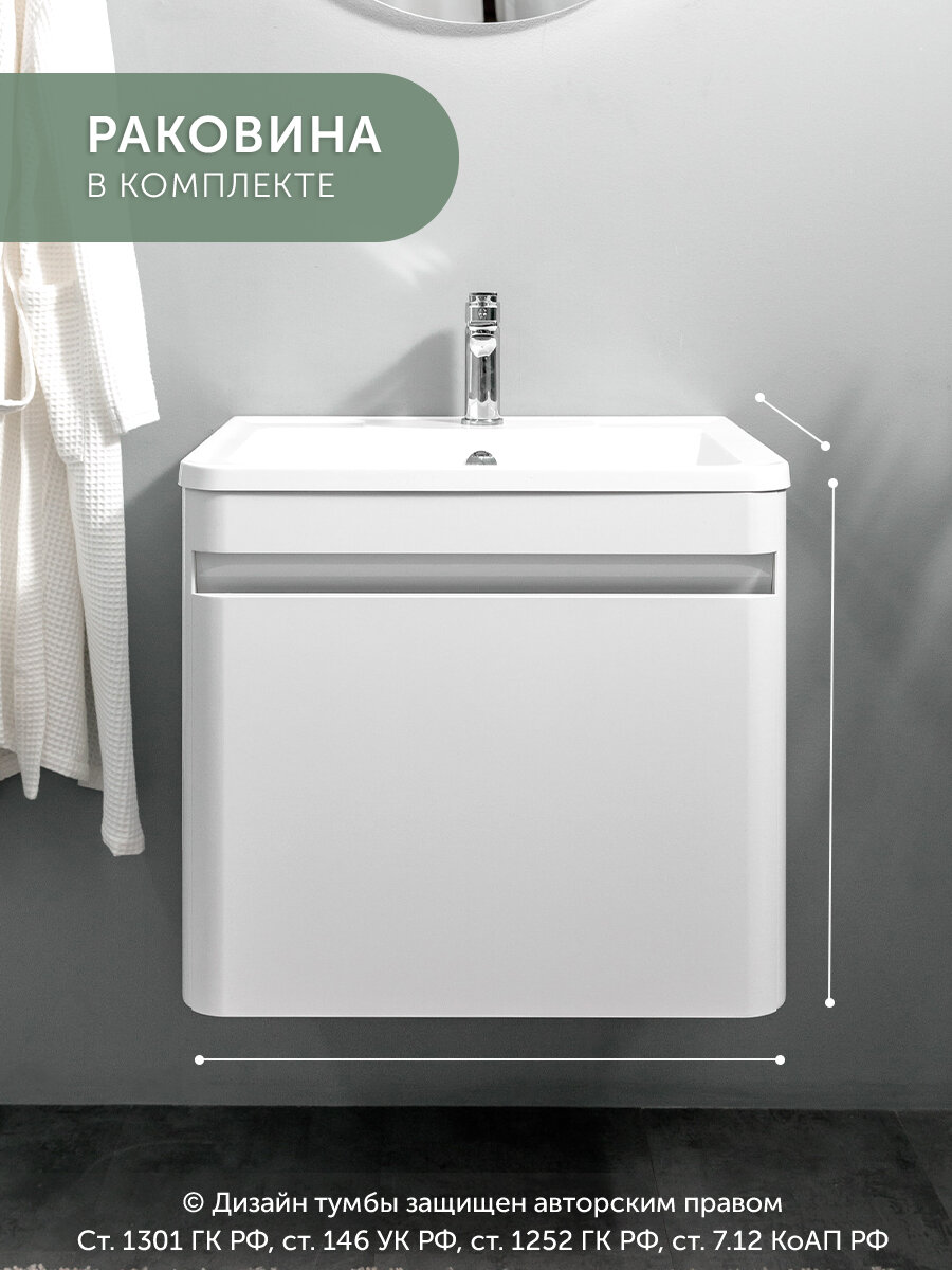 Купить Тумба с раковиной в ванную подвесная с ящиком с доставкой по всей России.