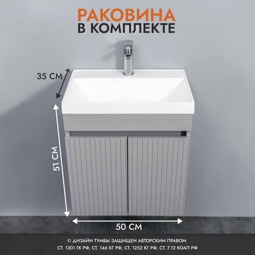 Купить Тумба с раковиной в ванную Tenno 50, умывальник в комплекте, серая, матовая с дверцами и фрезерованным фасадом с доставкой по всей России.