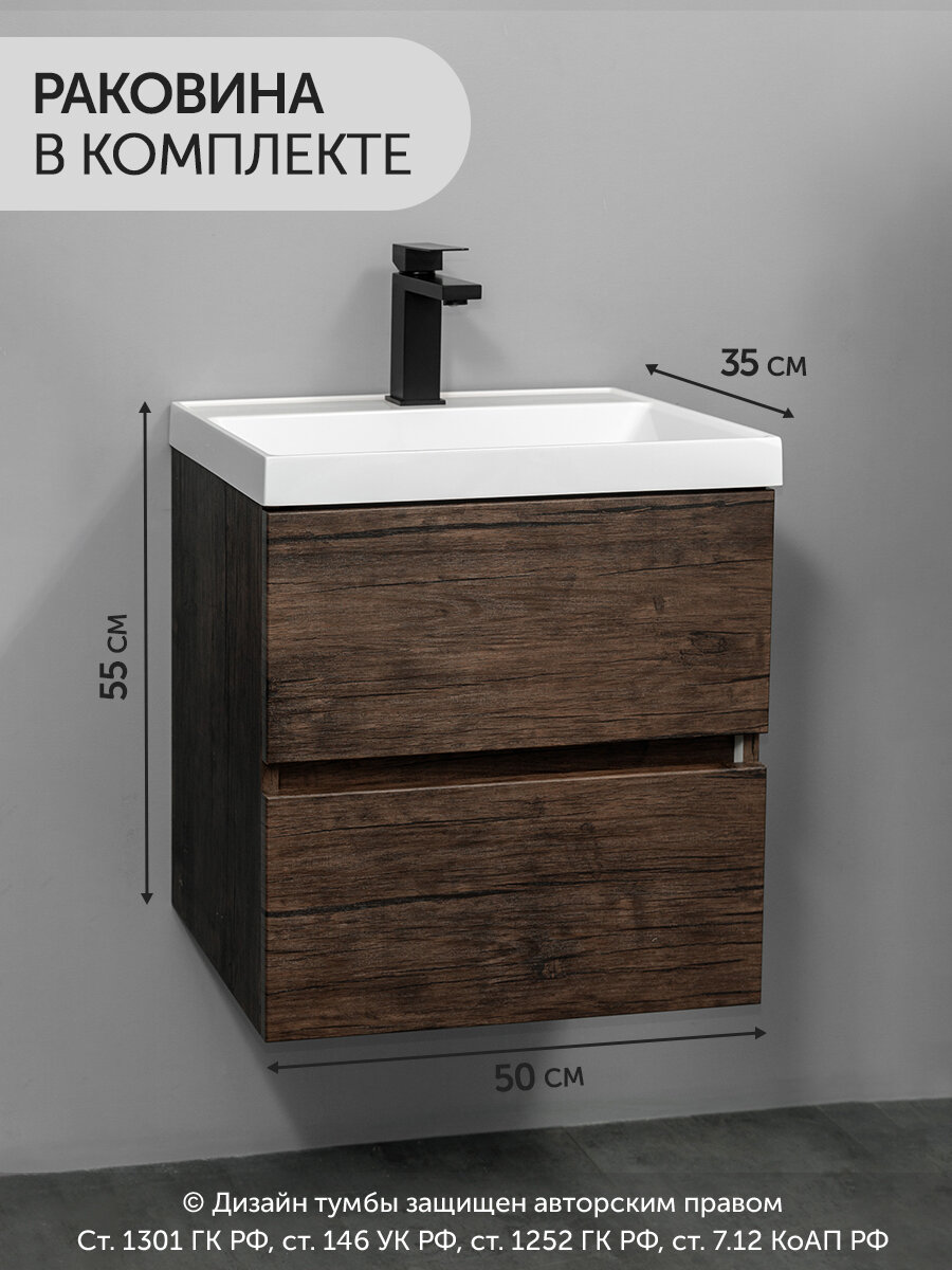 Купить Тумба с раковиной в ванную / Раковина с тумбой подвесная с ящиками в ванную с доставкой по всей России.
