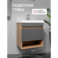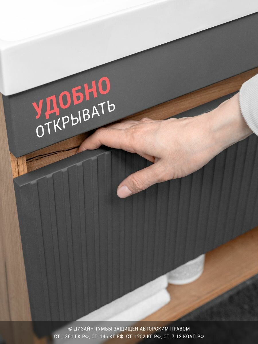 Тумба с раковиной в ванную Fresco 50, умывальник в комплекте, графит дуб крафт золотой с ящиком и нишей: сравнение цен, характеристики, фото, актуальное наличие и цены.