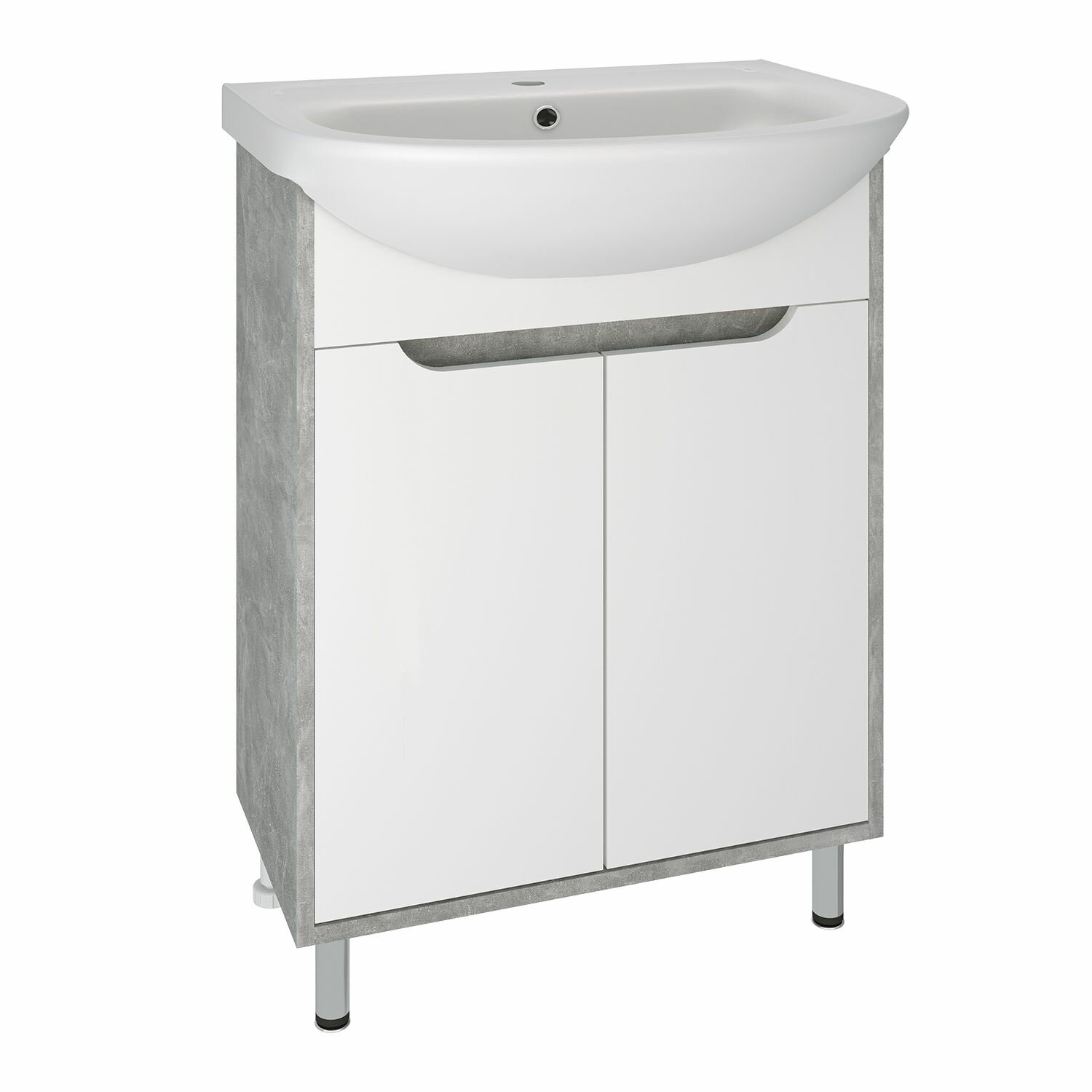 Купить Тумба для ванной с раковиной напольная Runo Эко 60, серый бетон, раковина Уют 60 с доставкой по всей России.