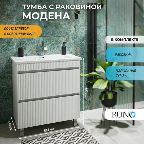 Купить Тумба с раковиной в ванную Runo Модена 65, 2 ящика, напольная, белый, с умывальником Оскар 65 с доставкой по всей России. Тумба с раковиной в ванную Runo Модена 65, 2 ящика, напольная, белый, с умывальником Оскар 65: сравнение цен, характеристики, фото, актуальное наличие и цены.