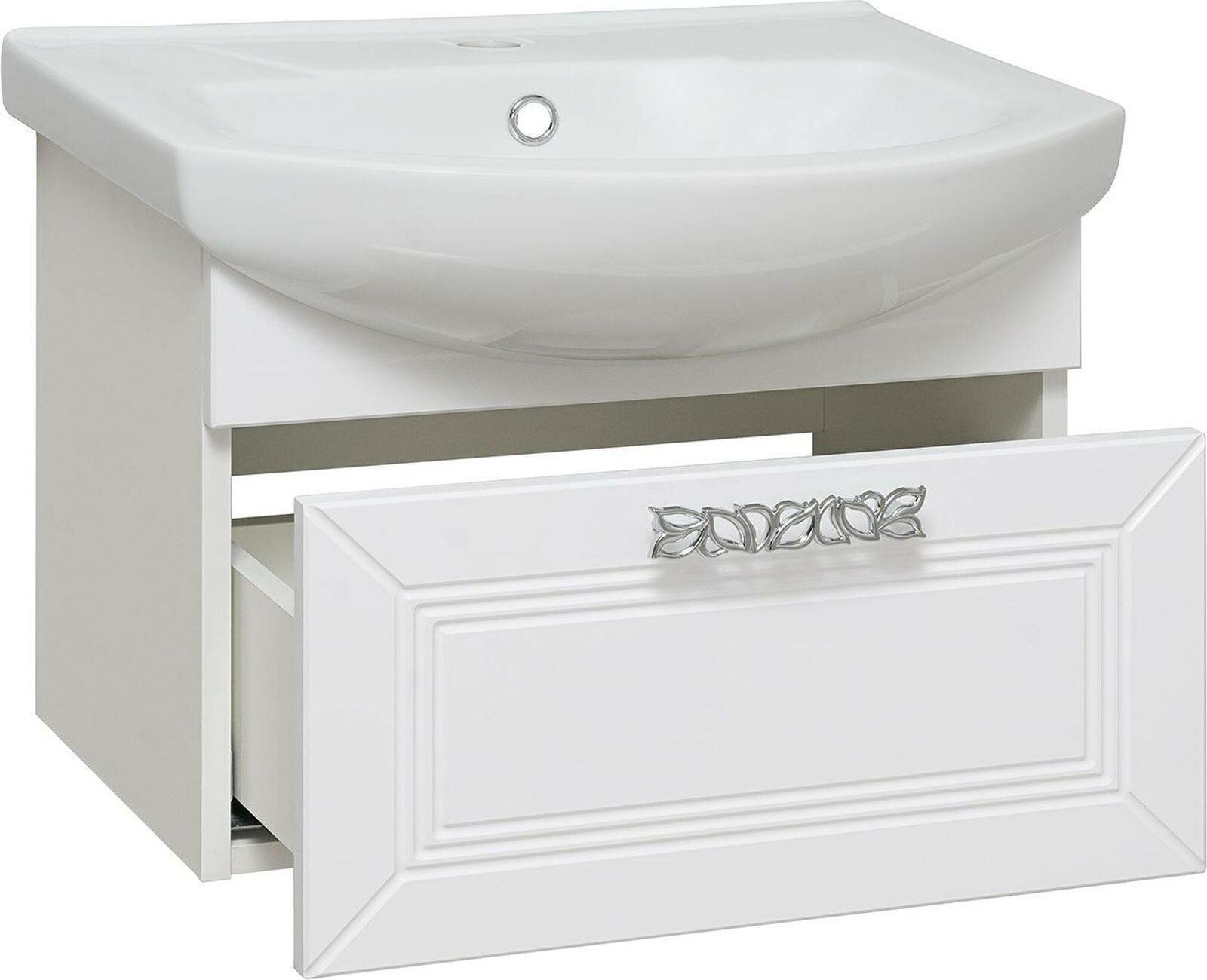 Тумба с раковиной RUNO монро - современный изящный дизайн мебели для ванной в классическом белом цвете. Стильная фрезеровка и оригинальные ручки придают изделию утонченность и шик. Тумба в ванную монро (подвесная) имеет выдвижной ящик на шариковых направляющих, оснащенных системой плавного закрывания. Корпус тумбы выполнен из материала ДСП с покрытием ламинат, фасад из МДФ с покрытием пленка. В комплекте идут: металлическая ручка, навесы для крепления к стене. Тумба для ванной комплектуется керамической раковиной "Элеганс 55" (550*435 мм). Раковина имеет глубину 17 см. Мебель для ванной Руно - красота и практичность в мелочах! Цвет товара на мониторе может отличаться от реальных цветов, это зависит от настроек цветового профиля и разрешения Вашего монитора или мобильного устройства.