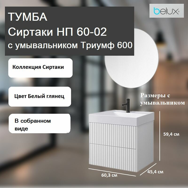 Тумба с раковиной в ванную Сиртаки Н60 см, подвесная, Белый глянцевый (1): сравнение цен, характеристики, фото, актуальное наличие и цены.