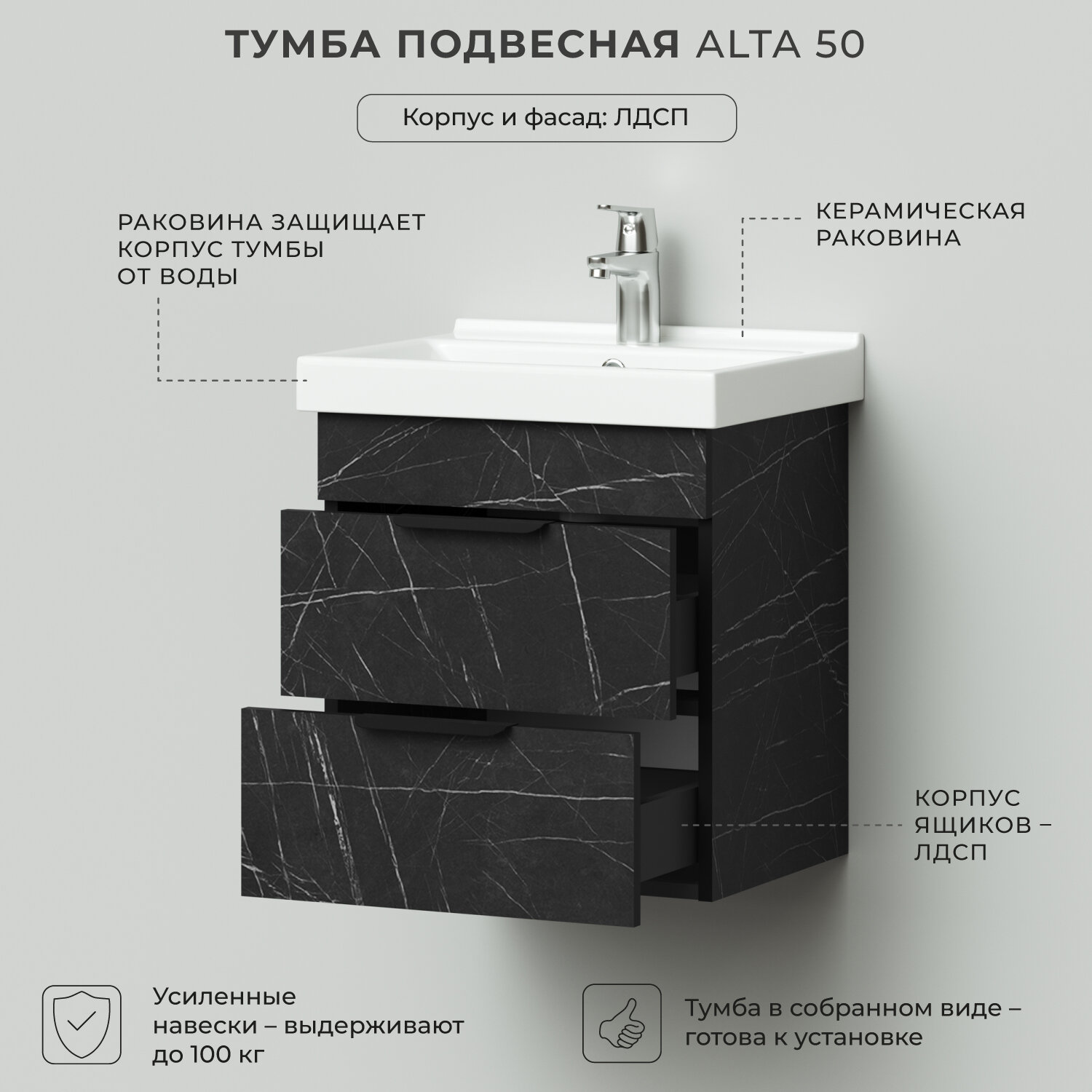 Купить Тумба с раковиной в ванную, тумба для ванной Итана Alta 50 500х403х530 Камень Пьетра Гриджиа черный // под умывальник мебельный FEST 50 с доставкой по всей России. Тумба с раковиной в ванную, тумба для ванной Итана Alta 50 500х403х530 Камень Пьетра Гриджиа черный // под умывальник мебельный FEST 50: сравнение цен, характеристики, фото, актуальное наличие и цены.