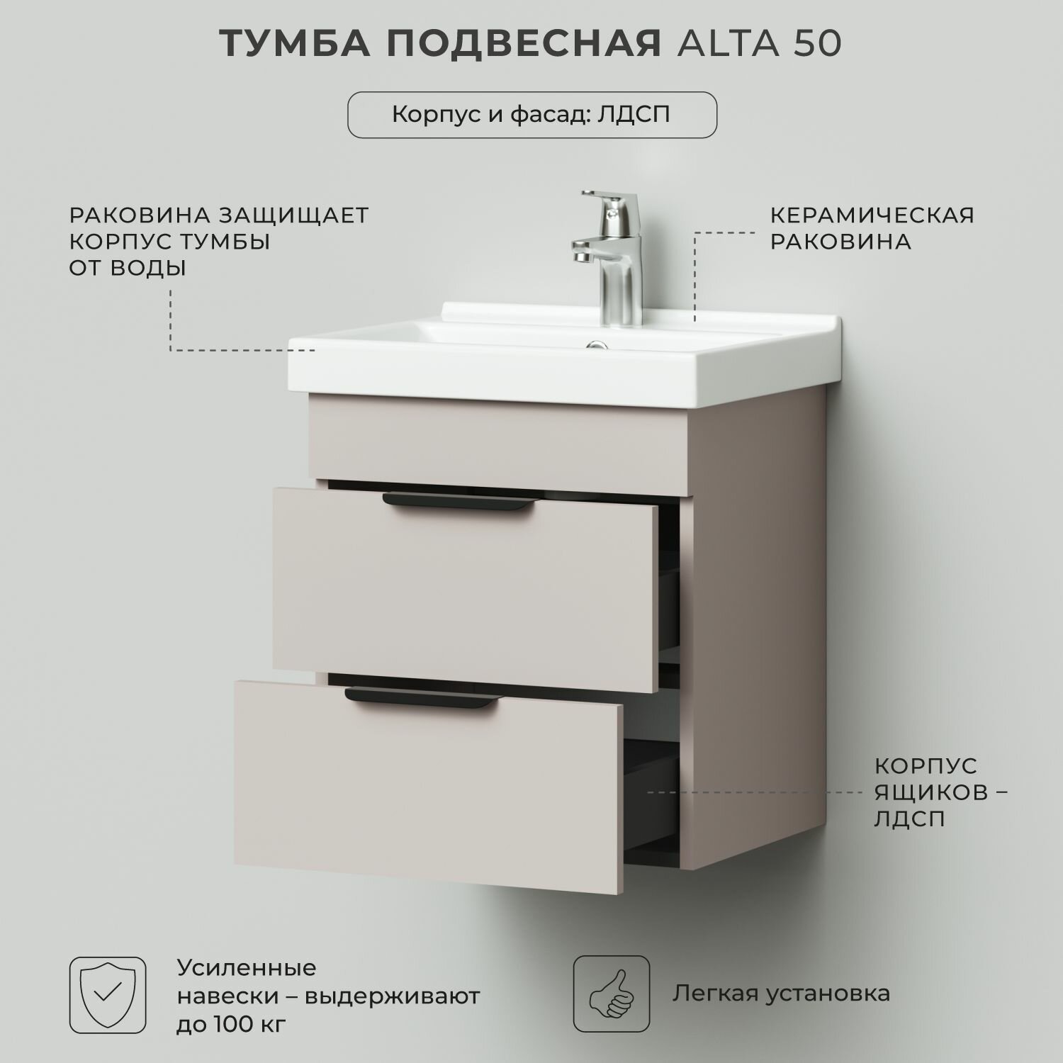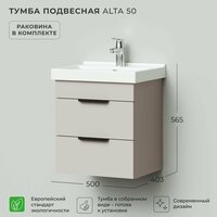 Купить Тумба с раковиной в ванную, тумба для ванной Итана Alta 50 500х403х565 Кашемир серый с раковиной FEST 50 с доставкой по всей России.