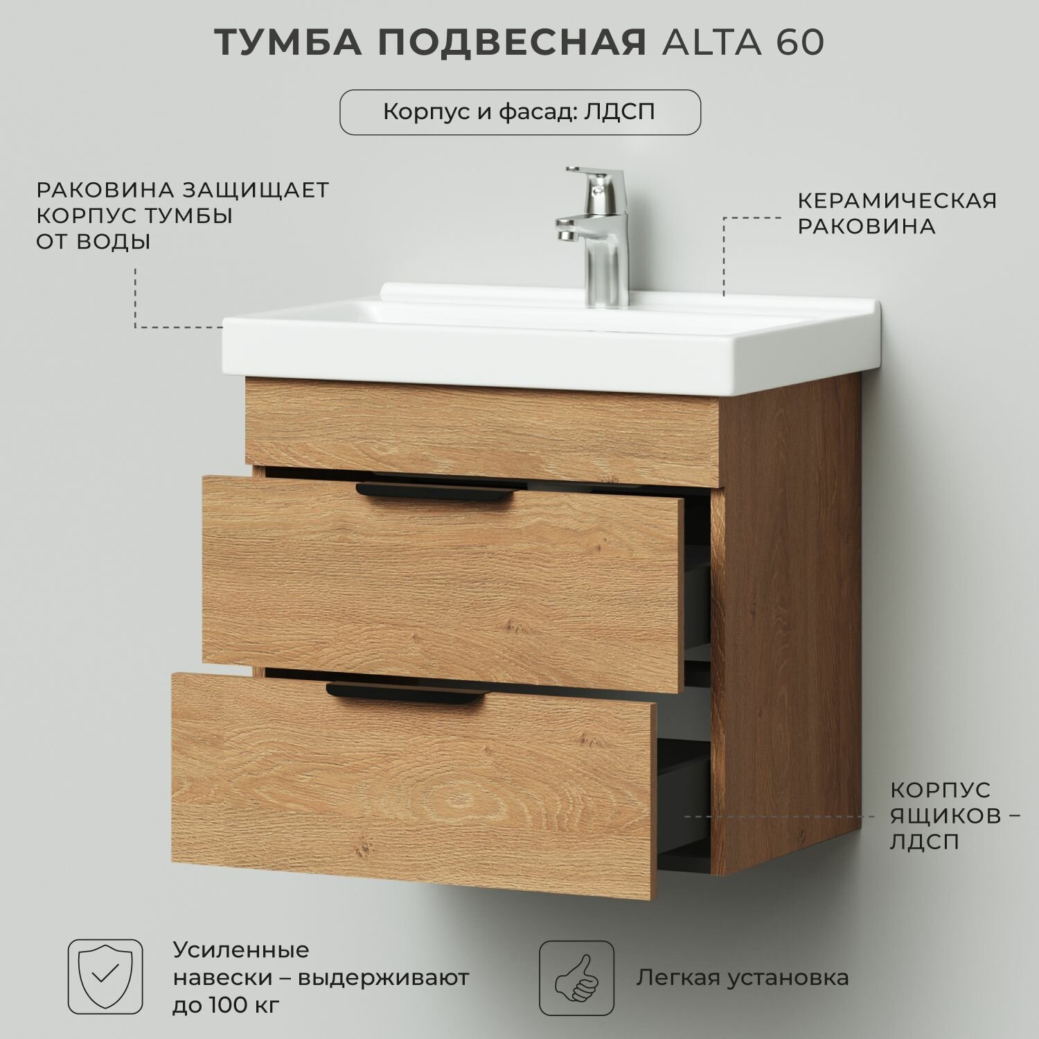 Тумба с раковиной в ванную, тумба для ванной Итана Alta 60 605х403х565 подвесная Дуб Корбридж с раковиной FEST 60: сравнение цен, характеристики, фото, актуальное наличие и цены.