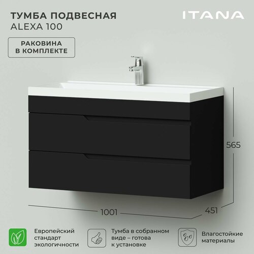 Купить Тумба с раковиной в ванную, тумба для ванной Итана Alexa 100 1001х451х565 подвесная Черный с доставкой по всей России.