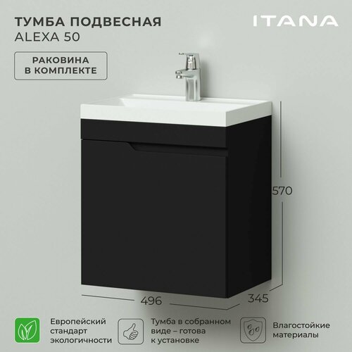 Купить Тумба с раковиной в ванную, тумба для ванной Итана Alexa 50 493х343х570 подвесная левый Черный с доставкой по всей России.