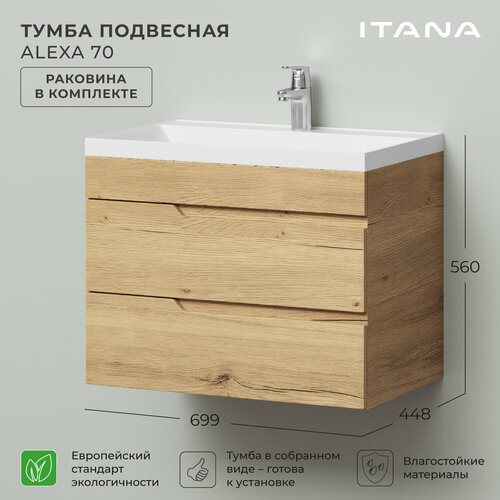 Купить Тумба с раковиной в ванную, тумба для ванной Итана Alexa 70 699х448х560 подвесная Дуб Мавелла Голд с доставкой по всей России. Тумба с раковиной в ванную, тумба для ванной Итана Alexa 70 699х448х560 подвесная Дуб Мавелла Голд: сравнение цен, характеристики, фото, актуальное наличие и цены.
