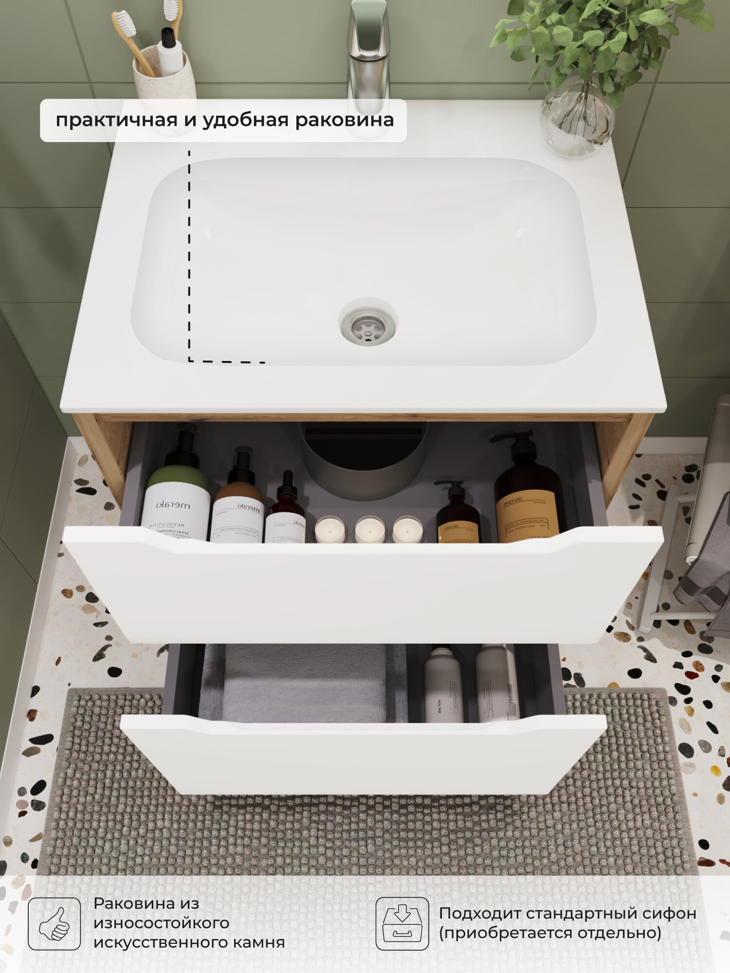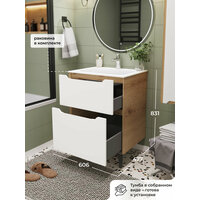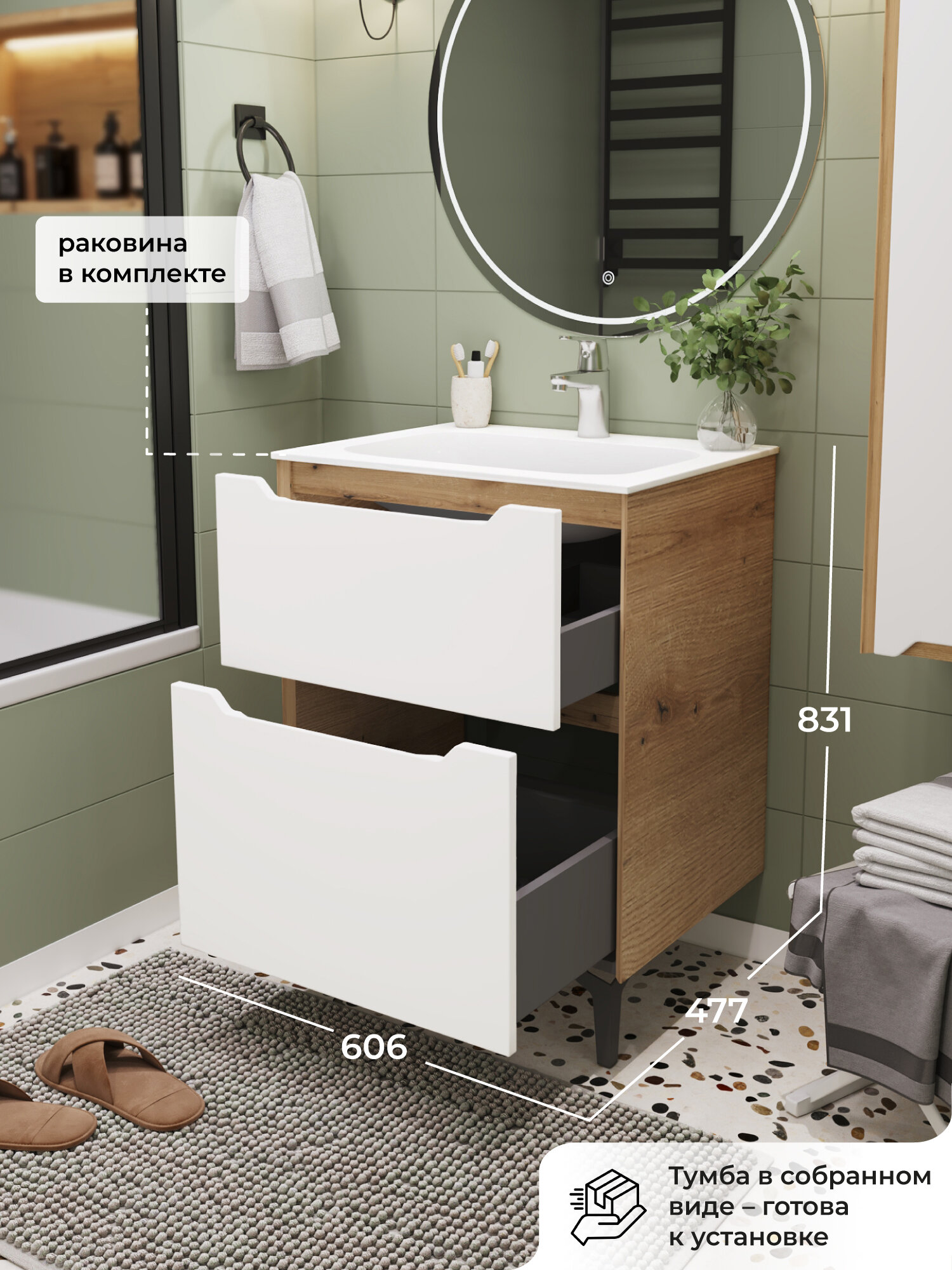 Купить Тумба с раковиной в ванную, тумба для ванной Итана Nill 60 606х477х831 напольная Белый глянец с доставкой по всей России.