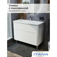 Купить Тумба с раковиной в ванную, тумба для ванной Итана Roberto 100 1002х457х855 напольная Белый глянец с доставкой по всей России.