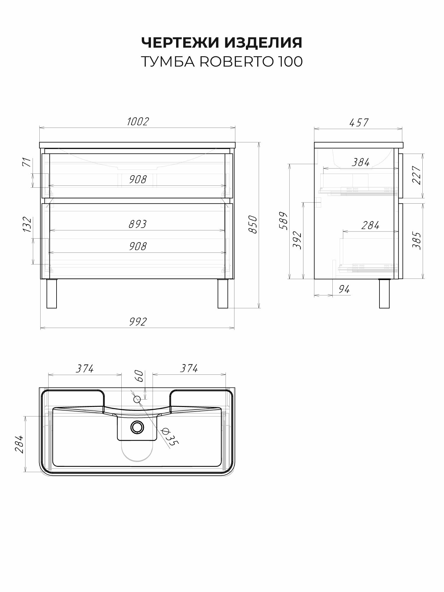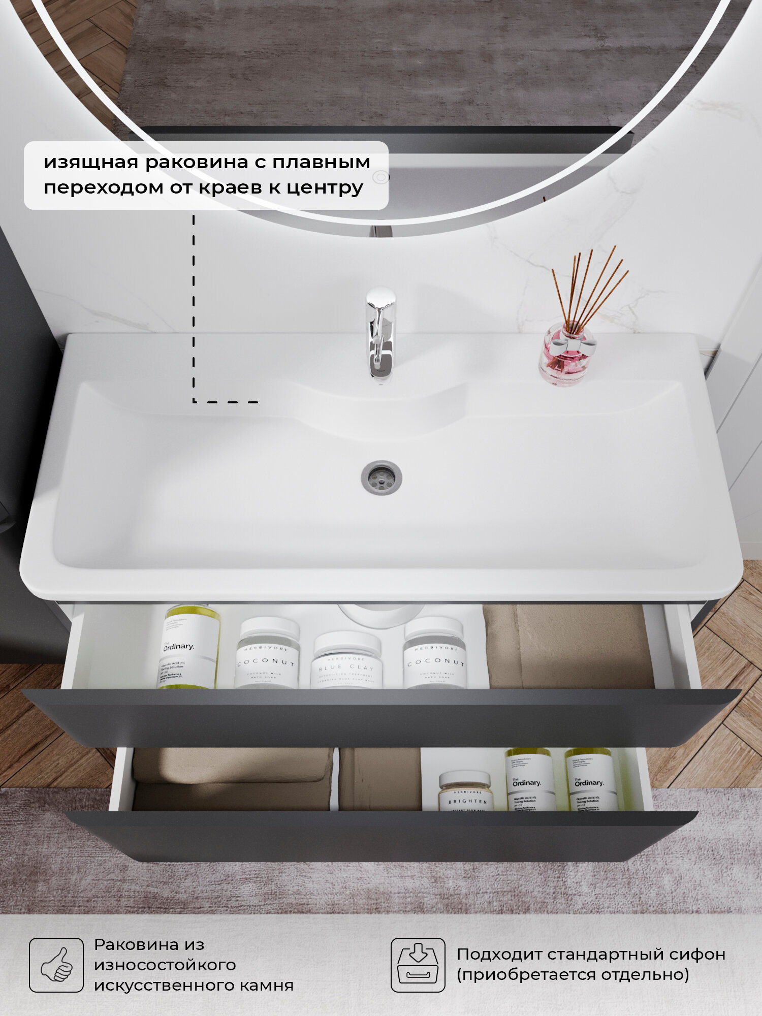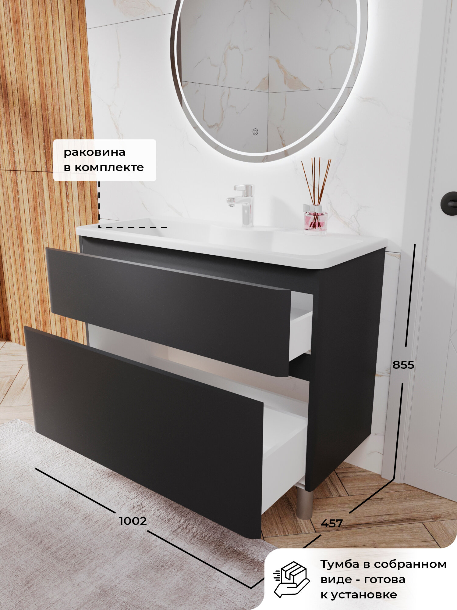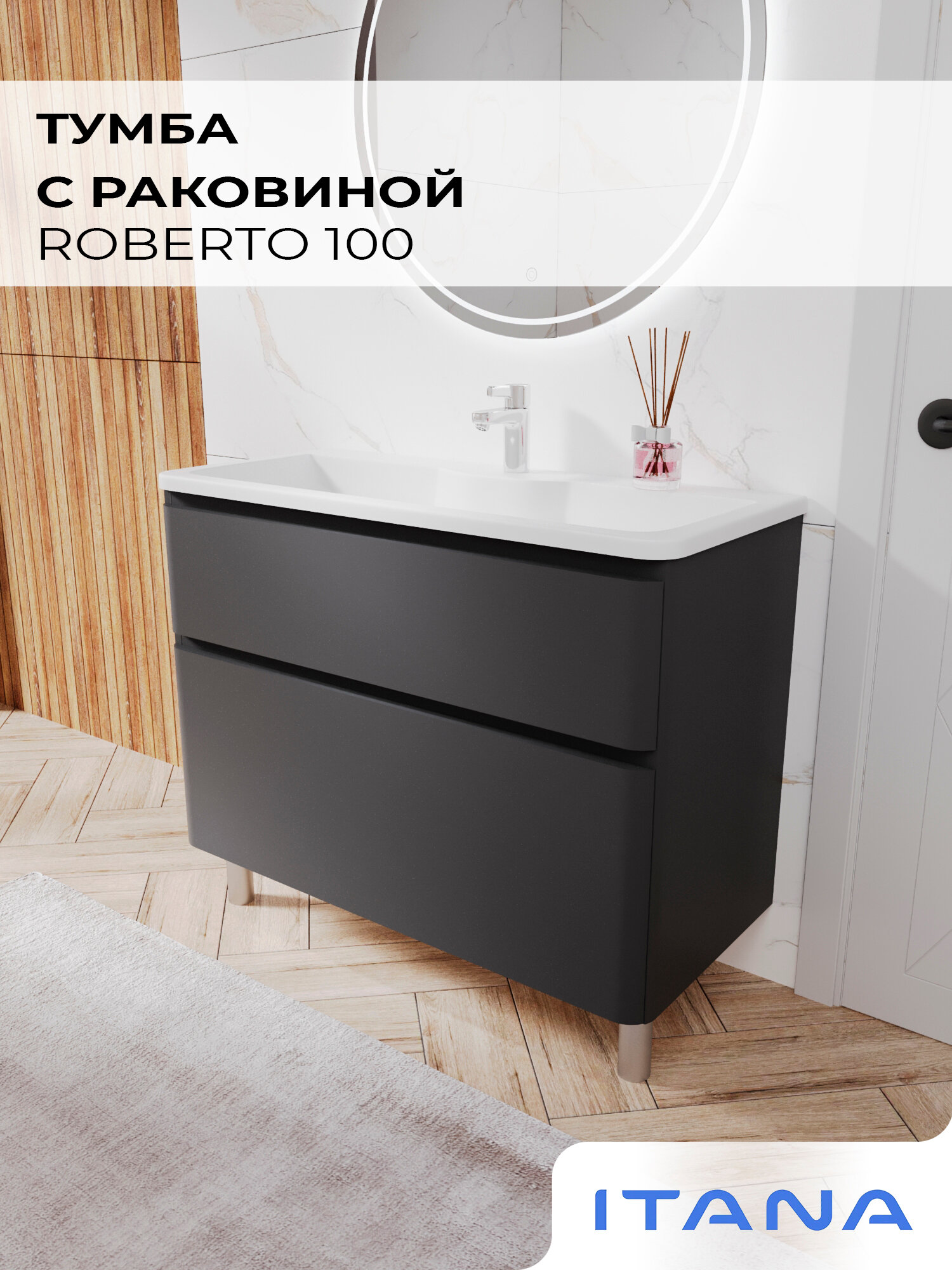 Тумба с раковиной в ванную, тумба для ванной Итана Roberto 100 1002х457х855 напольная Графит: сравнение цен, характеристики, фото, актуальное наличие и цены.