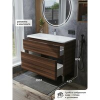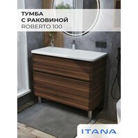Купить Тумба с раковиной в ванную, тумба для ванной Итана Roberto 100 1002х457х855 напольная Орех Пекан шоколад с доставкой по всей России.