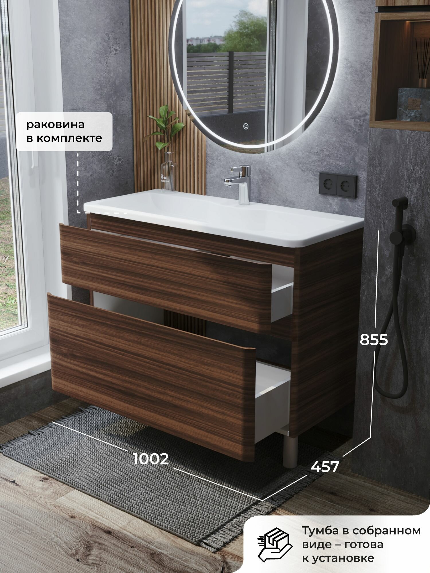 Тумба с раковиной в ванную, тумба для ванной Итана Roberto 100 1002х457х855 напольная Орех Пекан шоколад: сравнение цен, характеристики, фото, актуальное наличие и цены.