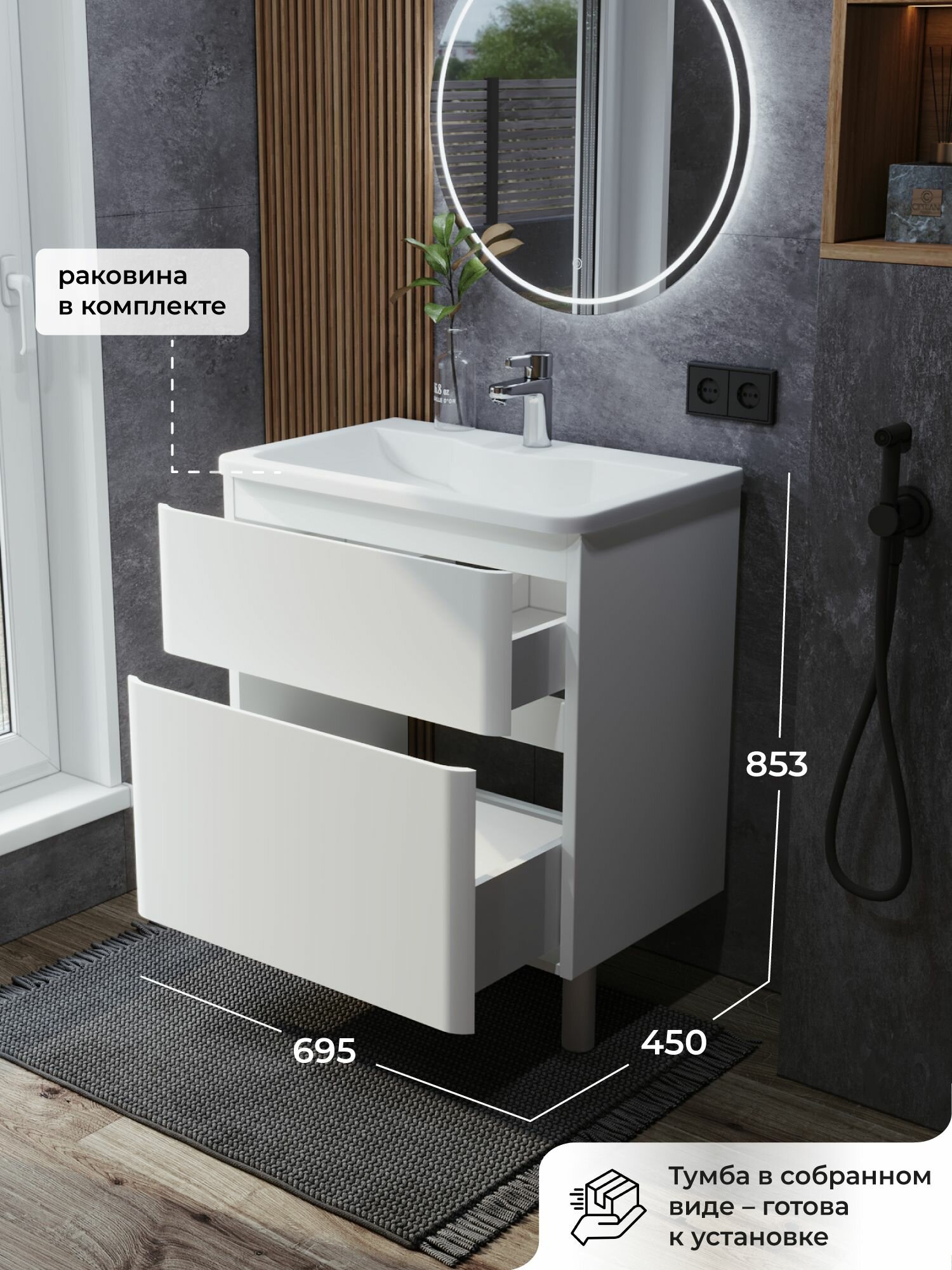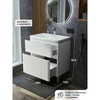 Купить Тумба с раковиной в ванную, тумба для ванной Итана Roberto 70 695х450х853 напольная Белый глянец с доставкой по всей России.
