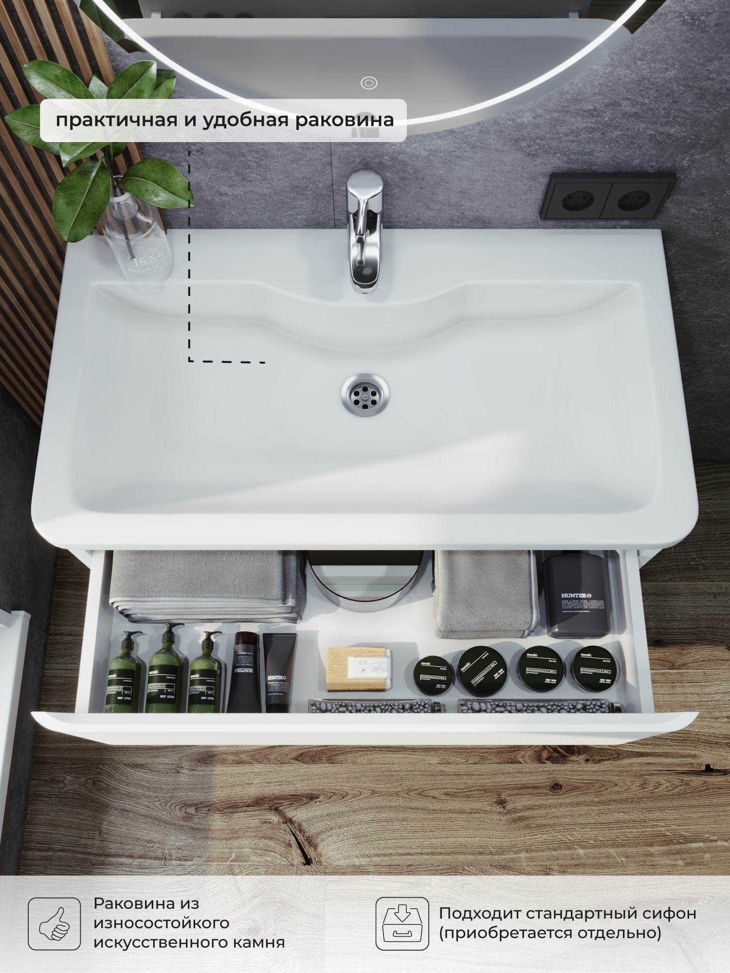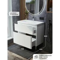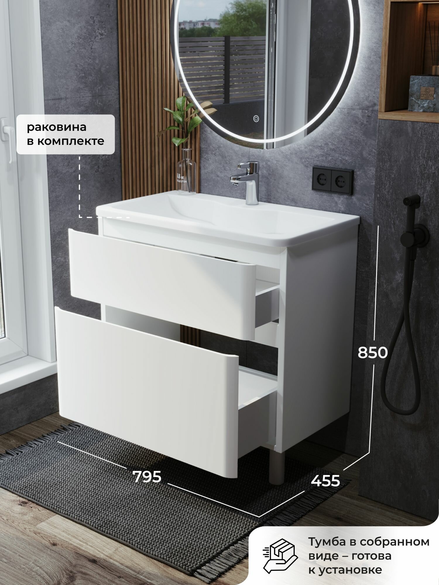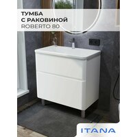 Купить Тумба с раковиной в ванную, тумба для ванной Итана Roberto 80 795х457х850 напольная Белый глянец с доставкой по всей России.