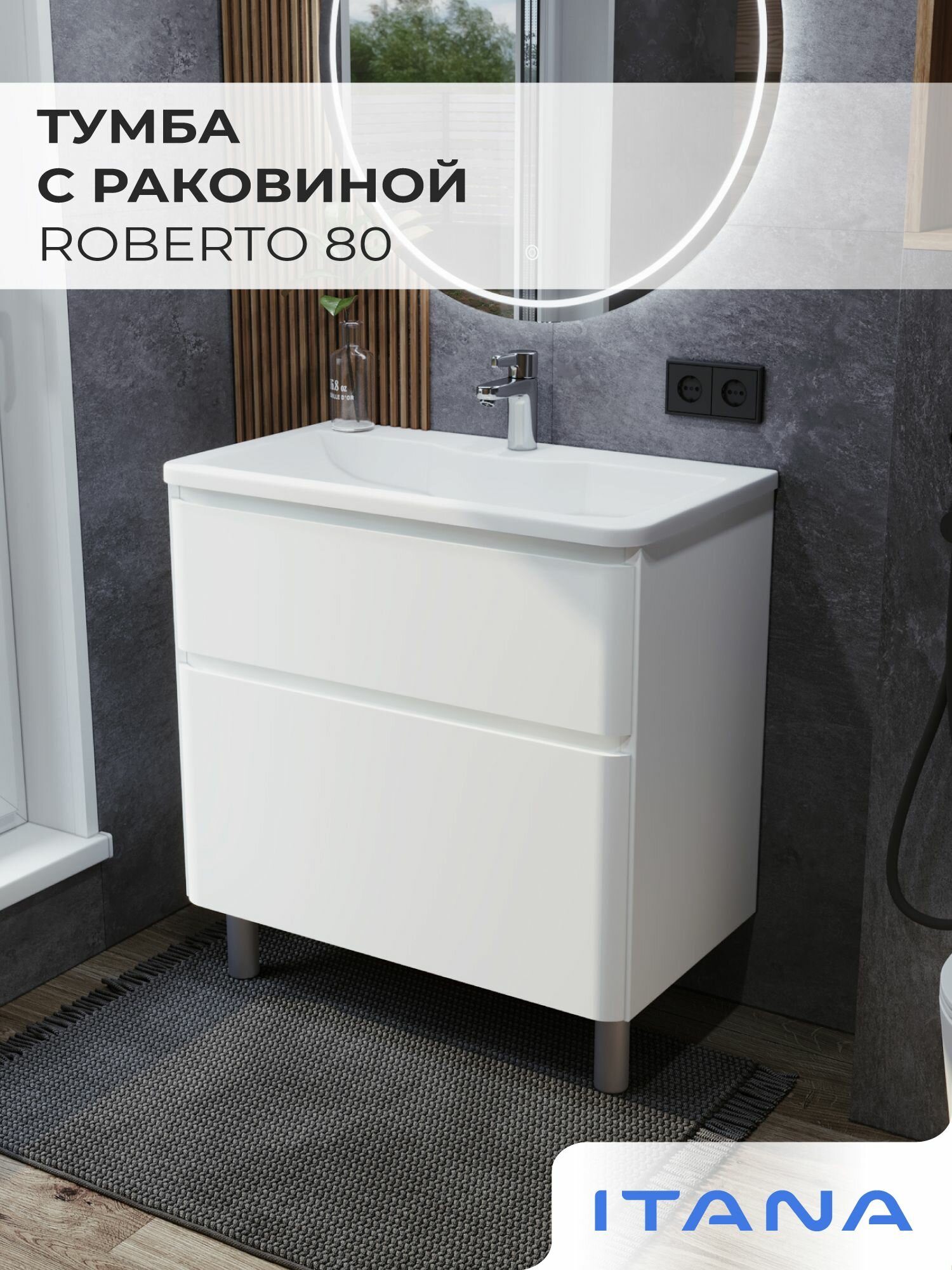 Тумба с раковиной в ванную, тумба для ванной Итана Roberto 80 795х457х850 напольная Белый глянец: сравнение цен, характеристики, фото, актуальное наличие и цены.