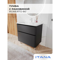 Купить Тумба с раковиной в ванную, тумба для ванной Итана Roberto 80 795х457х850 напольная Графит с доставкой по всей России.